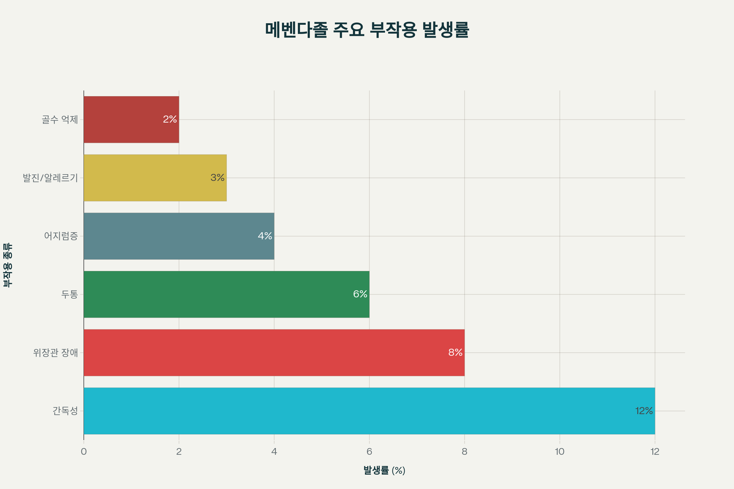 - 간독성 (12%): 가장 심각한 부작용으로, 2020년 삼성서울병원에서 간독성 부작용 사례가 보고되었습니다.