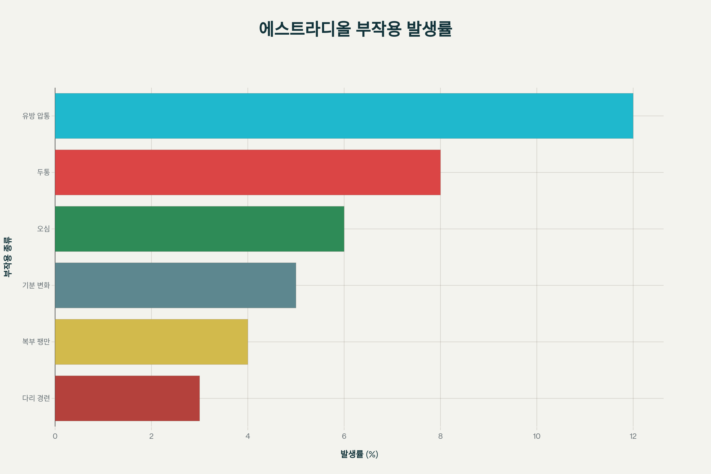 - 유방 압통 (12%): 가장 흔한 부작용
