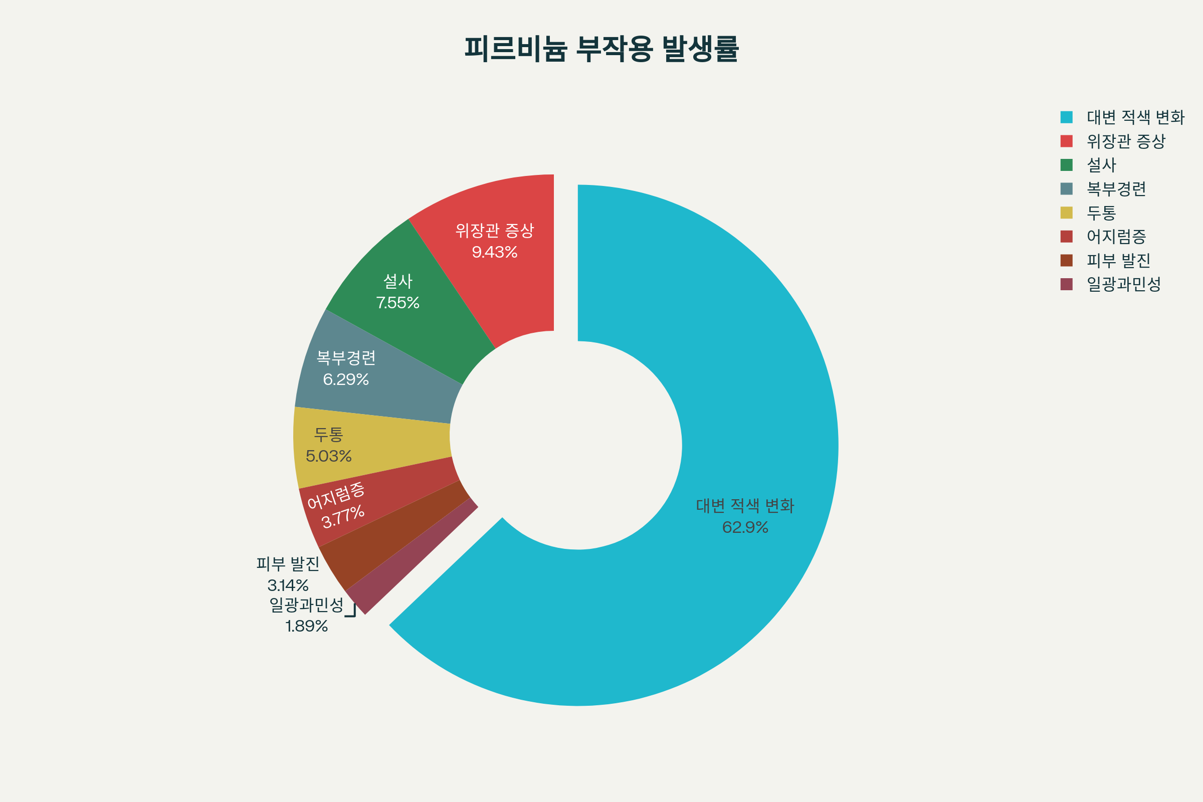 - 대변 적색 변화 (100%): 약물 색소에 의한 무해한 현상