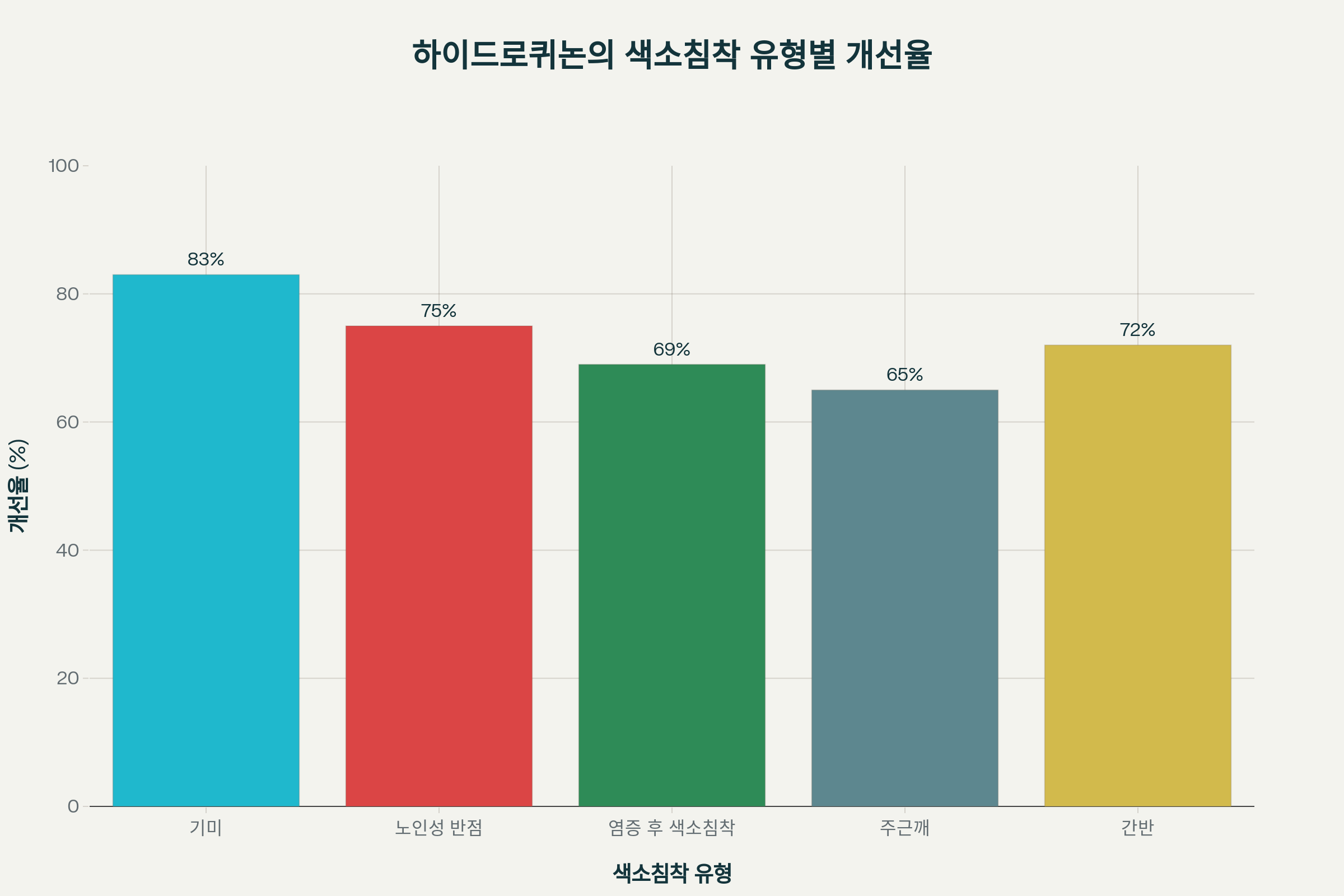 • 기미: 83% 개선율로 가장 높은 효과