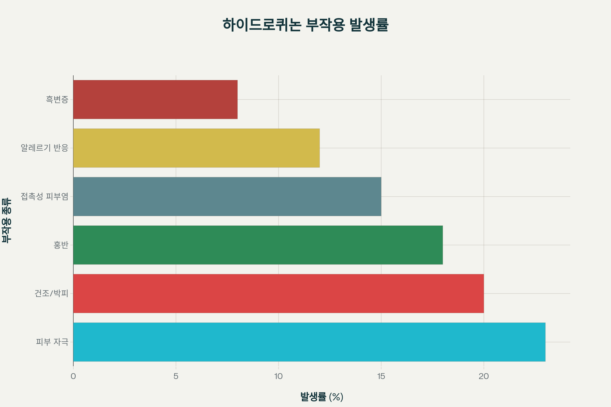 • 피부 자극 (23%): 가장 흔한 부작용으로 따가움, 가려움 동반