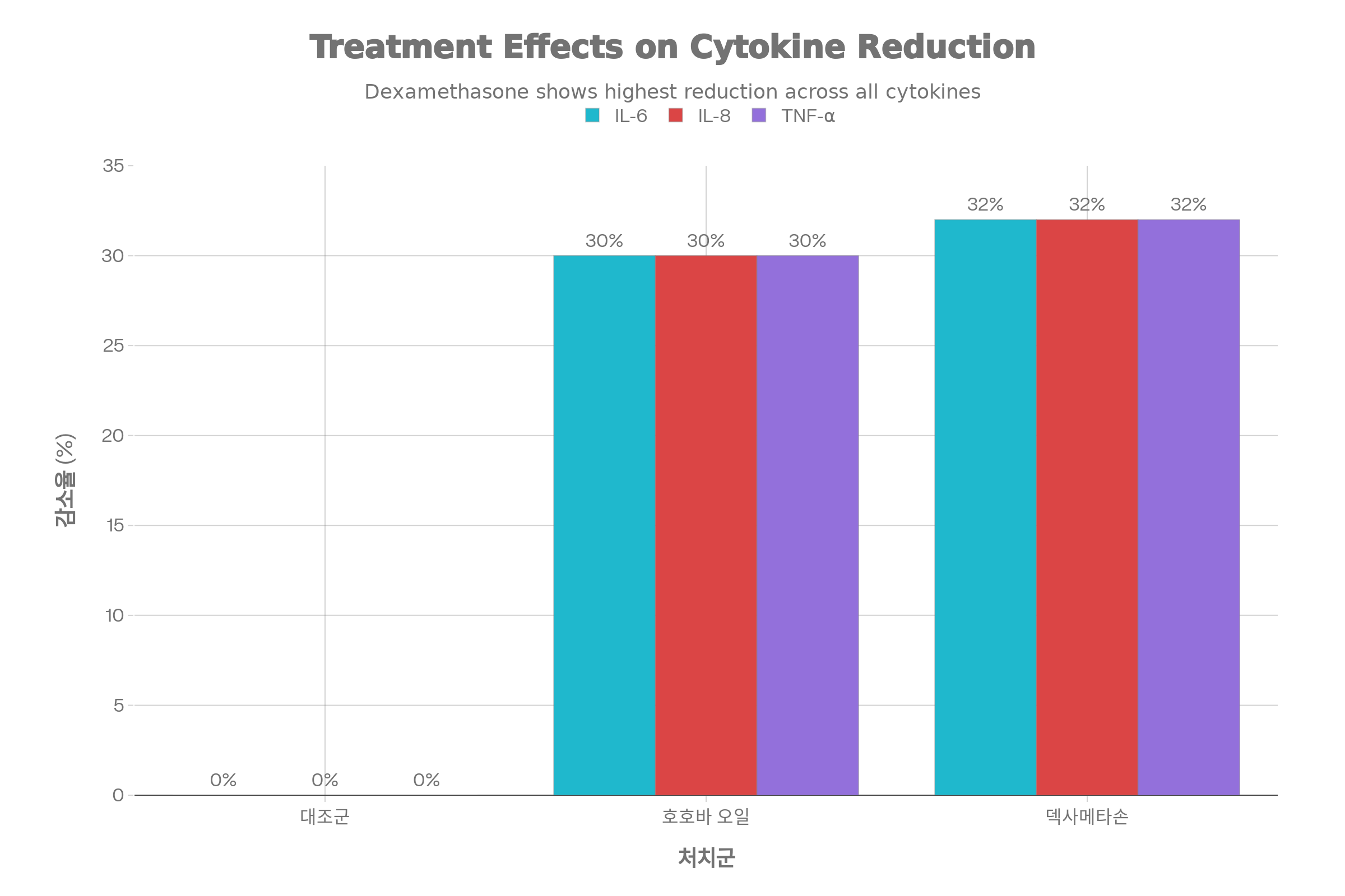 호호바 오일의 항염증 효과: 염증성 사이토카인 감소율 비교